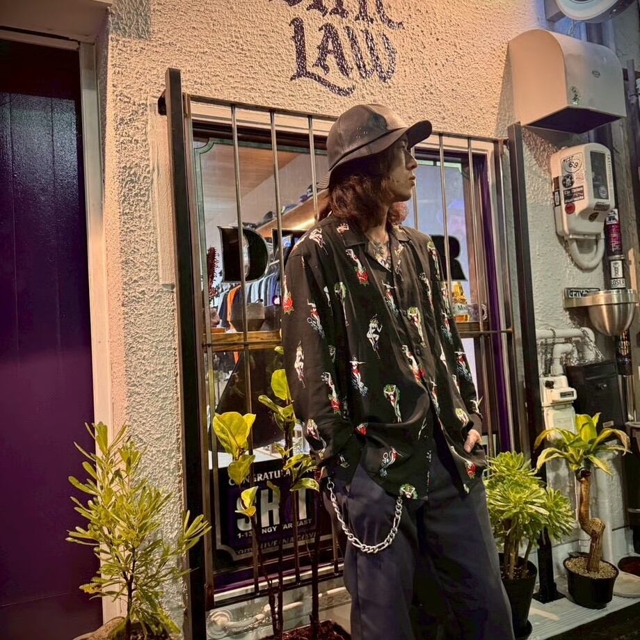 オープンカラー仕様のレーヨンシャツ。