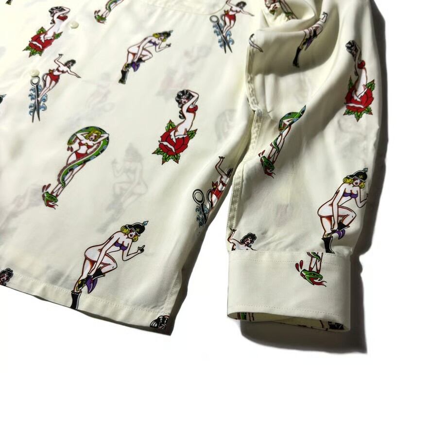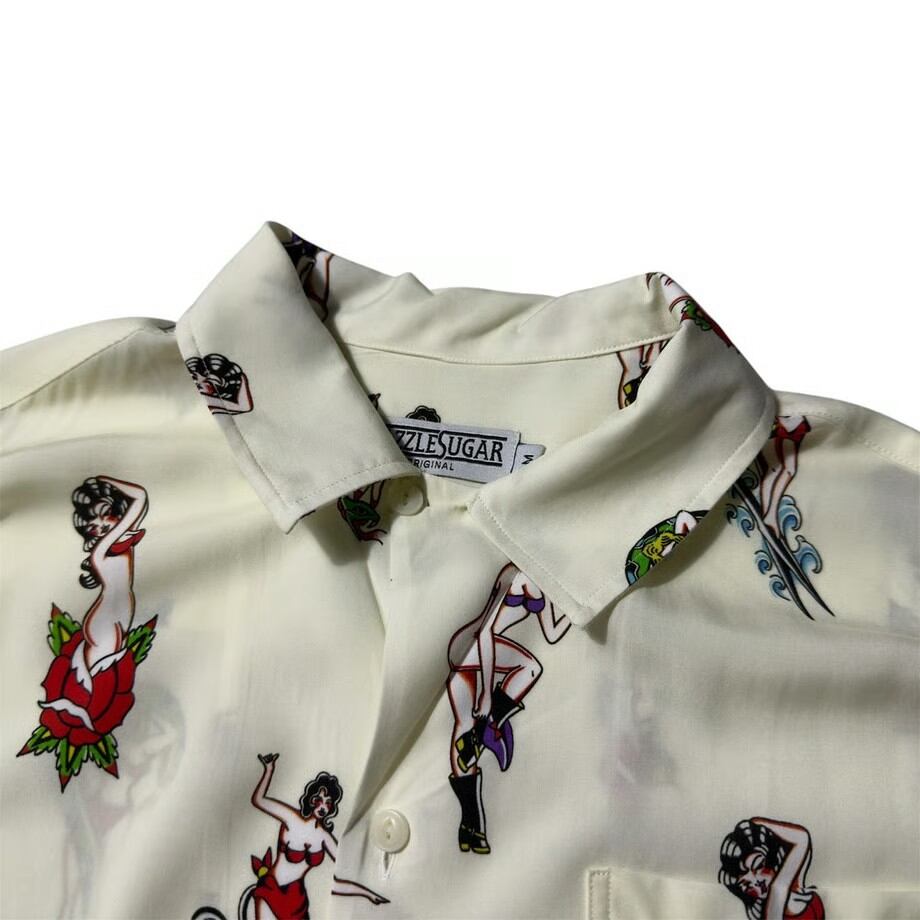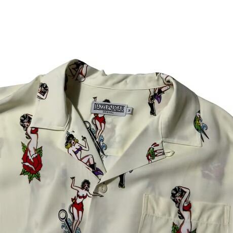 艶やかで妖艶なピンナップガールを全面に落とし込んだ総柄仕様。