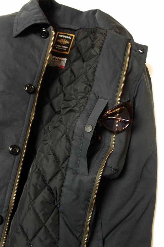 防風と放熱防止の為に、薄くしなやかな撥水加工を施した高密度ナイロンタフタを採用。