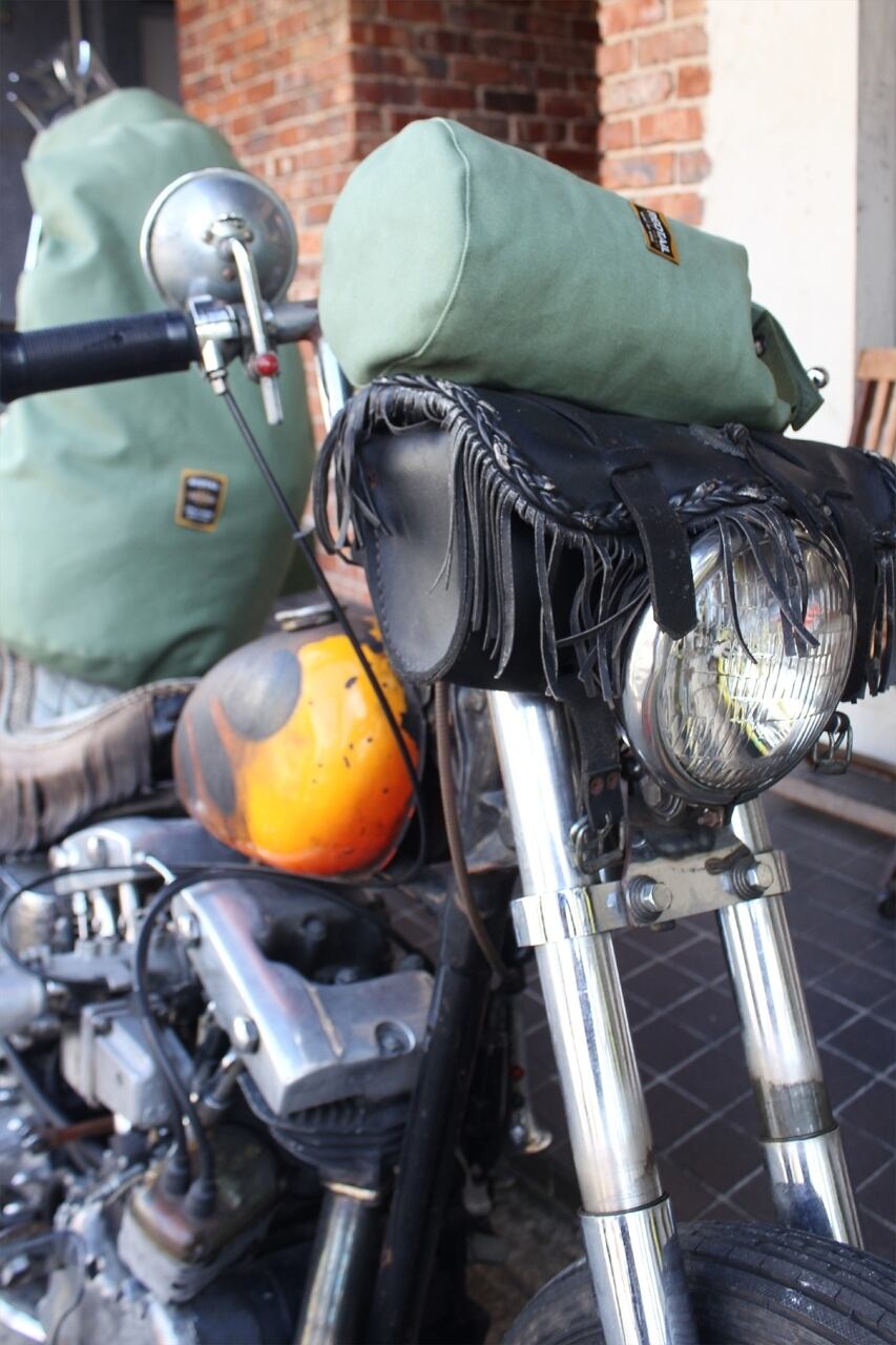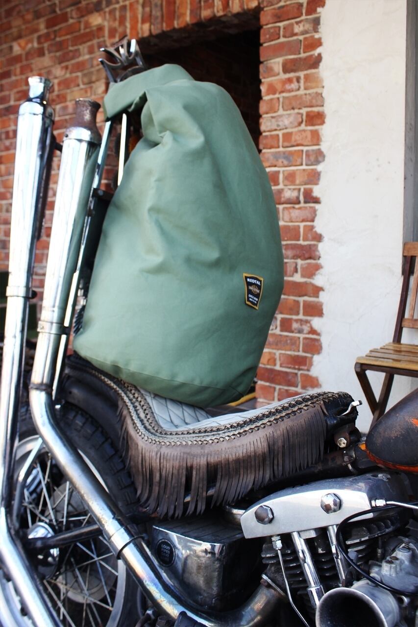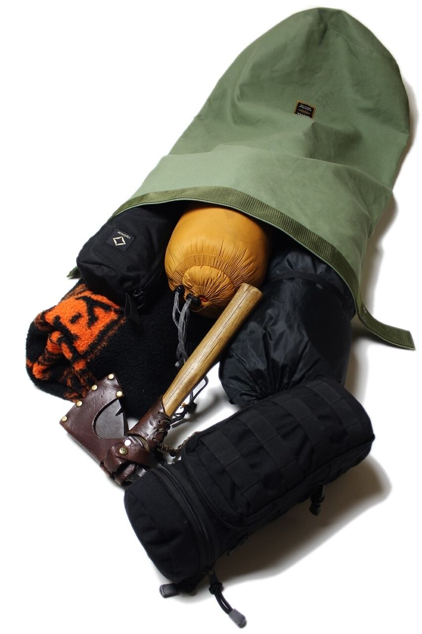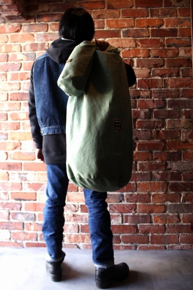■撥水加工された厚手のキャンバス地を使用したダッフルバッグ。