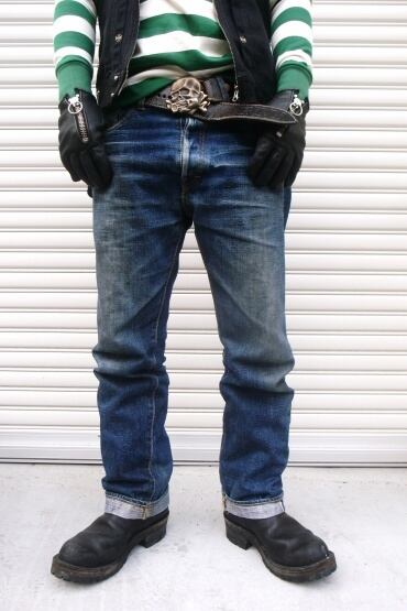 ■粗織りの66ミミ付きデニムを使用。