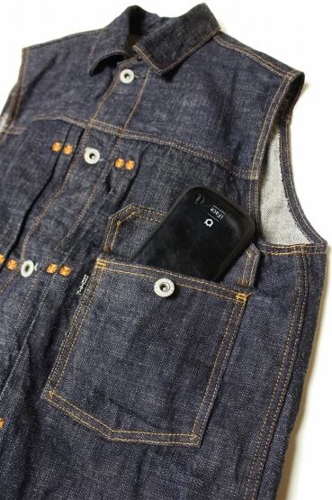 今回のモデルで4作目のこのデニムベストは、過去のモデルの中でも一番シンプルな仕上がりとなっています。がっしかし、それとは逆に収納力は過去一番!できる限りスマートにバイクに乗りたい方、カバンを持ち歩きたくない方、キャンプ好きな方には特にオススメします。