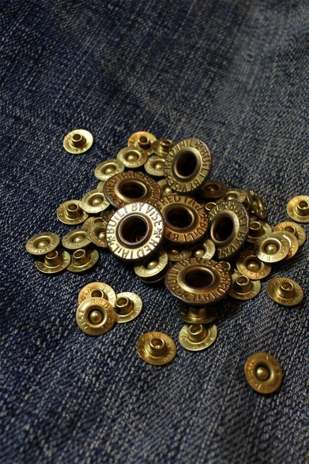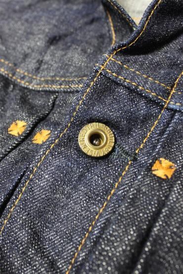 ■FRONTボタン裏には、ミミ付デニムが使用されています。